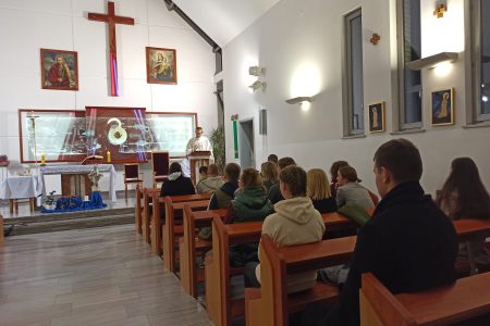 Po jej zakończeniu złożyliśmy naszemu duszpasterzowi życzenia z okazji obchodzonych imienin. Radosne bycie ze sobą w dopełnił czas w niezastąpionym „Tramwaju” na wspólnych rozmowach i gach integracyjnych.