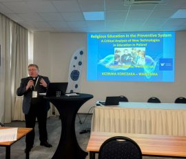 Dane mi było już ósmy raz uczestniczyć w tej konferencji, podczas której wygłosiłem referat pt. „Wychowanie religijne w systemie prewencyjnym. Analiza krytyczna nowych technologii w edukacji w Polsce”. W wystąpieniu przedstawiłem przede wszystkim istotę wychowania religijnego w systemie prewencyjnym, analizę sytuacji nauczania religii w Polsce, krytyczną ocenę roli nowych technologii w edukacji religijnej oraz wskazałem możliwości zastosowania systemu prewencyjnego we współczesnych warunkach.